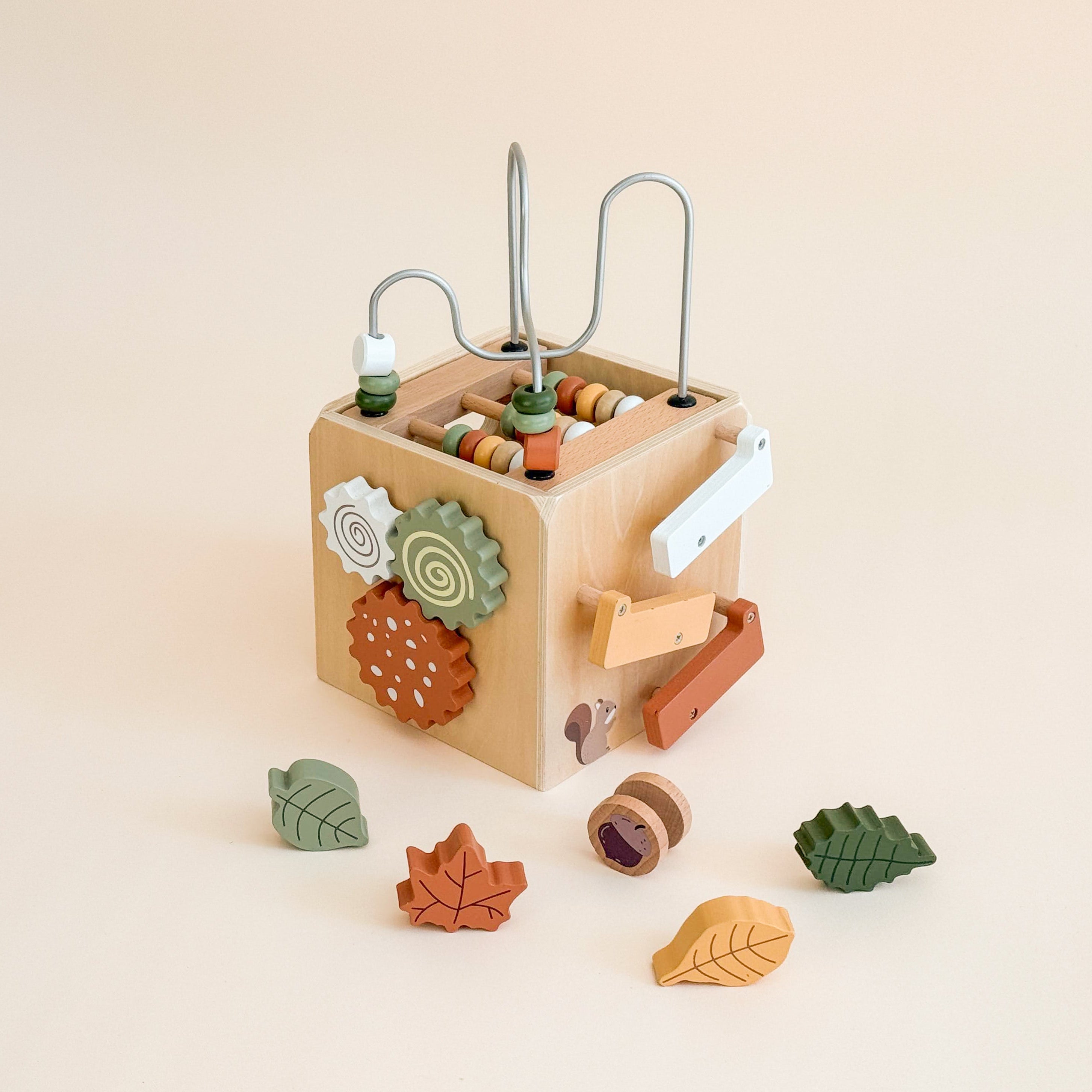 A five-sided challenge that encourages varied finger movements. From rotating gears to shape sorting, it builds the dexterity and mechanical logic essential for early development. -