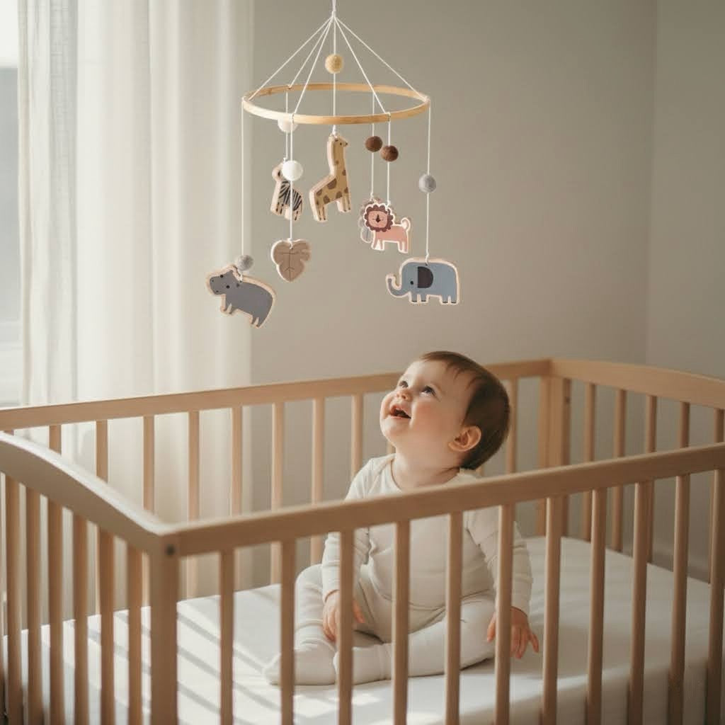 A gentle introduction to movement and depth. This high-contrast mobile helps your baby track objects and build the concentration needed for early visual development. -